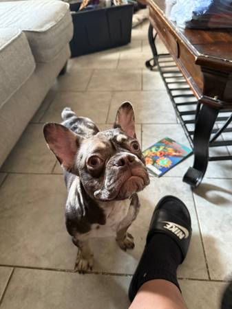 Hello unfortunally I am in need of rehoming my male frenchie due to my work and work schedule is too much for me and to leave him alone so much I just started this job like in September and I try to make it work but it’s not working out he just turned 1 year old he is up to date on all shots and dewormed he is puppy pad trained and kennel trained listens to some commands he is a Merle