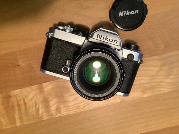 Nikon FM w Nikkor AIS 50mm f/1.8 lens. Fully mechanical camera which also takes the older Non-AI lenses unlike the FM2, FE2, etc. Fully functional. Clean and clear glass. $200 OBO. More on the Nikon FM below: