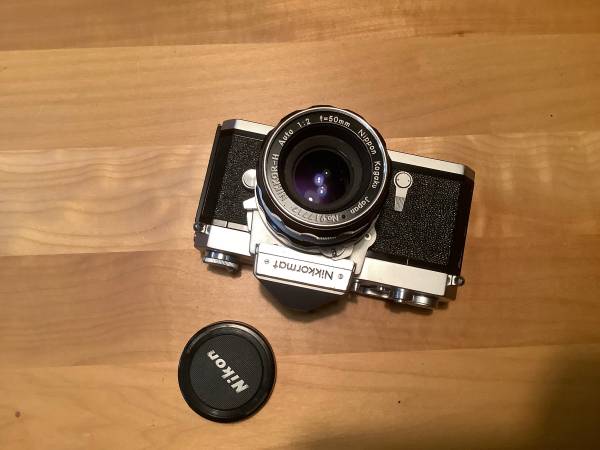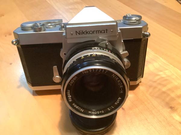 Nikon Nikkormat FTN w Nikkor H 50mm f/2. Great classic Nikon “Brick” camera with excellent Tessar type f/2 lens. All features are fully functional and lens is one of the best for sharpness as well as good to reverse the lens for close up or Macro work. Meter and all functions work correctly. $125 OBO.