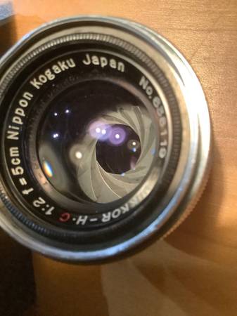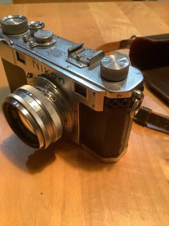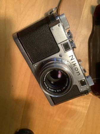 Nikon S w/ Nikkor 50cm f/2 Lens. Comes with original Nippon Kogaku leather case. Excellent functional condition. This camera is a bit rare! 1951-52. Cosmetic condition very good. Small ding in filter ring. Shutter speeds are accurate, finder in very clear. lens is clean and clear. Killer classic 35mm rangefinder camera! $350 OBO!