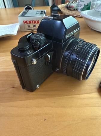 Pentax LX w FA-1 finder & 50mm 1.4 SMC lens. Classic and uncommon professional camera by Pentax. They were in production for almost 20 years but sold mostly in Japan and overseas. This is a very clean and fully functional kit. Glass is clear and clean and all speeds accurate. It was inspected at precision camera. More on its unique features and attributes below. $450 OBO.