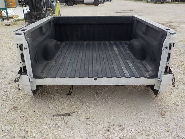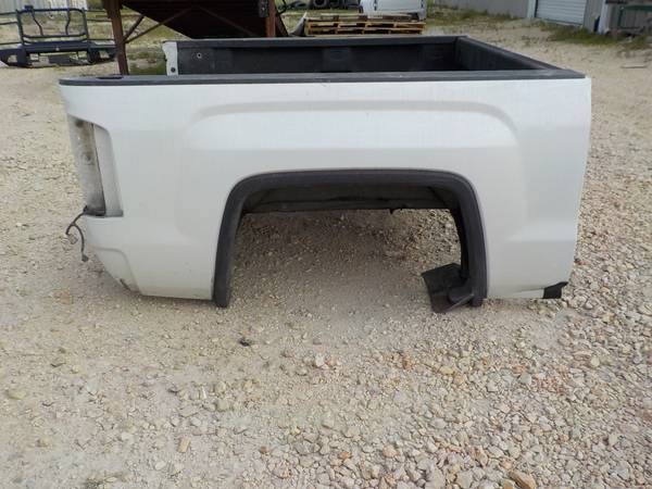 We have an 5 ft 8 in bed that will fit a GMC Sierra 1500 pickup from 2014 to 2018. This bed will not come with the tailgate or taillights. There is a small dent on the driver side near the bulkhead...