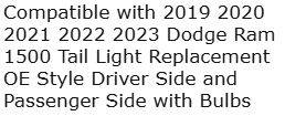 2019 2020 2021 2022 2023 Dodge Ram 1500 Tail Light Replacements. New in Box. Will not fit Classic Model. These are 14 1/2" tall. Classics are 14" tall. I have 2 passenger side and one driver side...