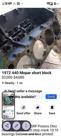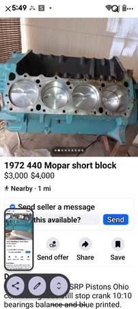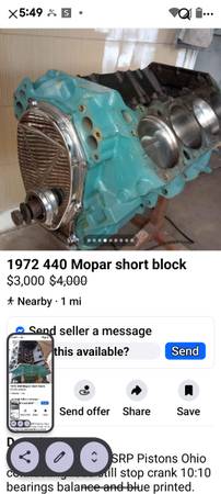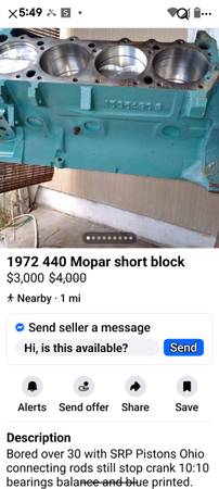 It's a 440 Mopar short block with a Miledon oil pan and assesories included excellent condition