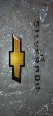 Used Chev bowtie bezel emblem and letters for Silverado LT that came off 2007 tailgate. $15.00 Cash.