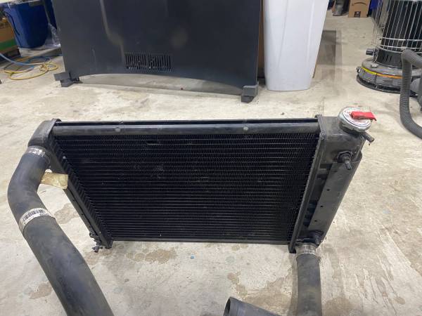Excellent condition copper radiator that is a 2 core. Radiator comes with newer upper and lower hoses.