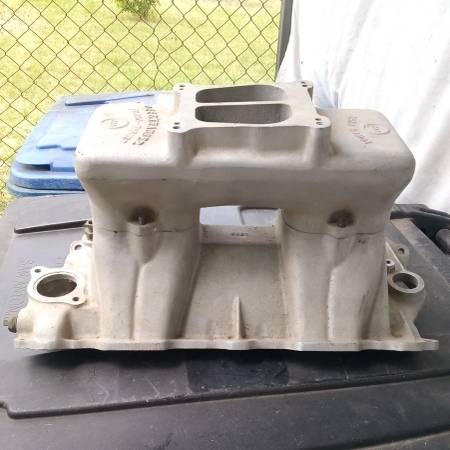 Made by Offenhauser. Good condition. No stripped bolt holes. Fits 1957 to 1986 Chevrolet small block V8 engines and 1987 and up Corvette 5.7L V8 engines with factory aluminum heads. Sold as shown. Price is firm. Cash only. No trades. Must pick up. Emails only. No calls or text. Thank you.