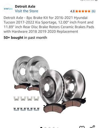 Detroit Axle - 8pc Brake Kit for 2016-2021 Hyundai Tucson 2017-2022 Kia Sportage, 12.00" inch Front and 11.89" inch Rear Disc Brake Rotors Ceramic Brakes Pads with Hardware 2018 2019 2020 Replacement