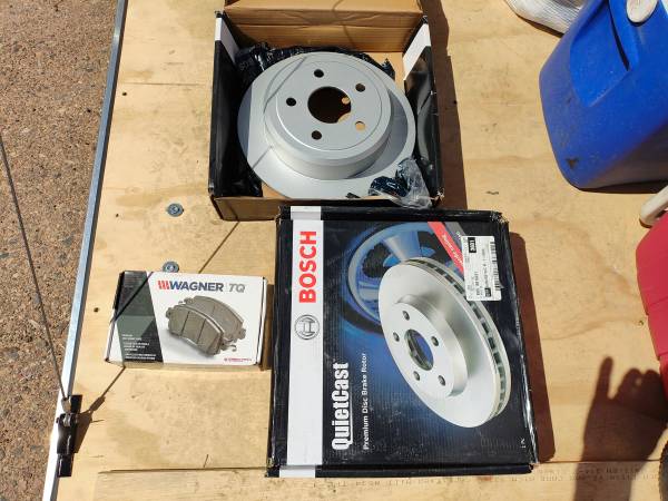 Brand new rear disc rotors and pads for a JK Wrangler. Original cost was $180+, $60 takes them! Text or call for best response.