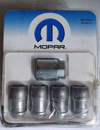 Authentic OEM accessory designed to protect against wheel and tire theft. This set, with a thread size of M14x1.5, is a common security feature for a wide range of vehicles under the Chrysler, Dodge, Jeep, and Ram brands. The original part number 82212567 has been updated to 82212567AA, though they refer to the same product.