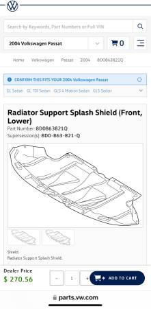 The shield was on a 2004 Passat. Comes with the fasteners. Sells for $270 new.
