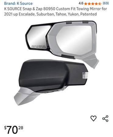 K SOURCE Snap & Zap 80950 Custom Fit Towing Mirror for 2021 up Escalade, Suburban, Tahoe, Yukon