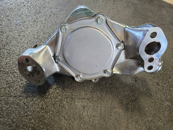 Never installed high volume short water pump. Fits small block chevy. Does not have provision for heater hose connection. $130 Firm. Cash only. Pick up in Seguin. 2ten7twotwozero0sixfive.