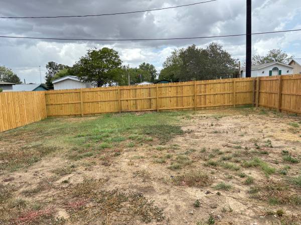This beautiful home features a sturdy slab foundation, single-car garage with washer/dryer hookups, and a welcoming front porch with Lone Star glass detail. Inside, enjoy a spacious kitchen with brand-new range, abundant storage, and breakfast bar. The hall bath offers double vessel sinks, butcher block counters, and a tiled tub/shower. Relax in the roomy master suite with two closets and private bath. Extras include a back porch, new windows with screens, baseboards, and a privacy fence with gate.