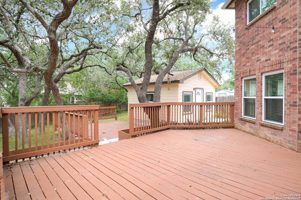 Beautiful home available for lease in NW San Antonio! This home has been well maintained and is ready for immediate move in! Nice open floor plan with no carpet on the first floor. Formal dining room opens into a large living area with fireplace. Recently renovated kitchen with quartz countertops, new cabinets. All appliances included ! 4 spacious bedrooms all on the second floor. Primary suite is generously sized with additional sitting room that can be used as a nursery or office. Detached studio has a full bathroom that can be used as an additional bedroom or living space! Shady backyard with large deck perfect for entertaining. Online application available. Small pets only please!