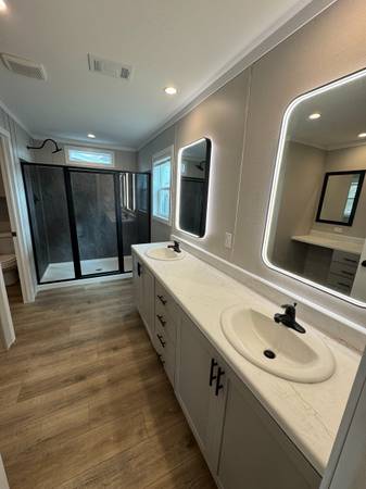 4 bed 2 bath, metal roof, textured walls, windows everywhere, nice accents all over, barn doors, huge shower, no carpet, 2000sqft. This double wide manufactured home or doublewide mobile home has all you are going to want in your home. O ya, CHECK OUT THE PANTRY. Crazy big, you can even add a second fridge in there is you want.