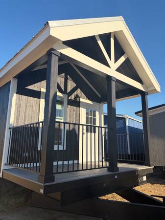 Check out this fully functional tiny home Porch Model Built In Entertainment Center Kitchen Fully Upgraded Appliances included with storage space Full Restroom Bedroom with closet and built in...