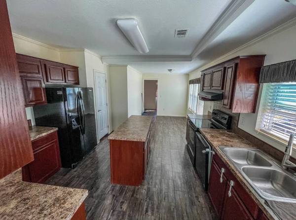 Step into spacious luxury with this beautiful 2017 double-wide mobile home, offering 1,568 square feet of refined living space. With 3 bedrooms, 2 bathrooms, and two 14x56 sections, this home is designed for both style and comfort. Fully taped and textured walls, crown molding throughout, and a spacious kitchen create an upscale feel that truly sets this home apart. Enjoy the added bonus of a porch that can come with the home, and all the appliances are included-stove, refrigerator, and dishwasher, making this a complete, move-in-ready home once relocated. This home must be moved at the buyer's expense from its current location in Floresville, TX, but it's a perfect opportunity to place a high-quality, well-maintained home on your own land or in a community of your choice.