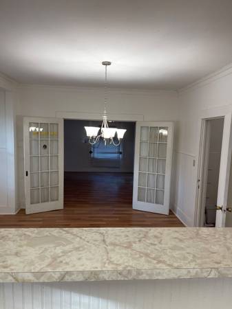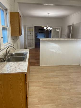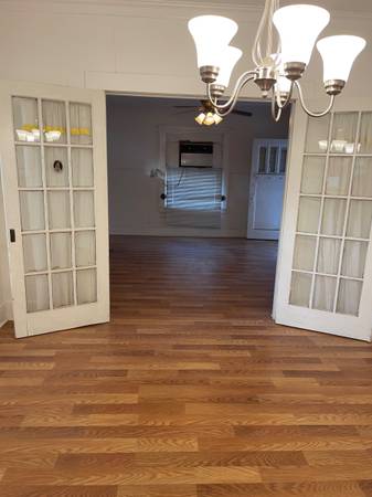 Welcome to this inviting traditional 2-bedroom, 1.5-bathroom home, perfectly situated on a spacious corner lot. From the moment you step onto the front porch, you'll feel the warmth and character this home offers. Inside, you'll find a beautifully renovated kitchen with new floors throughout, creating a fresh and modern atmosphere. The cozy breakfast nook is ideal for enjoying your morning coffee, while French doors open to a spacious living room, providing an easy flow for entertaining.