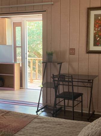 Furnished bedroom with independent entrance private bathroom and small kitchenette.for one person with few belongings. Rural type location about 27minutes from Downtown of 1604 south.no pets. 850 monthly parking in front of the house.TEXT for more information short term available.🌈👍