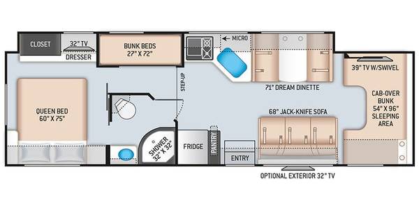 The 2022 Chateau 31E offers plenty of room, reliable power, and family-friendly features in a manageable Class C footprint. With bunk beds, multiple entertainment zones, and seating for everyone, it's perfect for road trips, camping, or even extended stays.