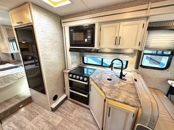 The 2023 Thor Chateau 28Z offers the perfect balance of comfort, maneuverability, and modern features in a well-designed Class C motorhome. Built on the dependable Ford E-450 chassis with the powerful 7.3L V8 “Godzilla” engine, this coach is ready for everything from weekend getaways to long cross-country tours.