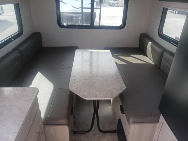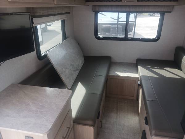 2021 Flagstaff Epro travel trailer, model 15 TB, super nice and clean ,looks brand new, all major appliances guaranteed to be working properly, great little trailer that will sleep two people, only 2728 lbs. Fiberglass exterior, two couches and a table, they convert into two individual beds or one 7 and 1/2 ft wide bed, roof air conditioner, Arch ceiling, TV and stereo, front kitchen with good counter space microwave oven and stove plus a two-door refrigerator ,step above entrance steps, 15 in heavy duty tires on aluminum wheels, power awning, power tongue jack, outside shower, frameless windows, big rear storage areas with lots of extras left behind by the original owner, this is a fantastic small trailer on sale $16,500, more pictures and information upon request, we welcome trades and offers, call or text Joe for your best deal, 830-660-7074, please call for information on other used and new units we have on the lot, right now we are loaded with small travel trailers, thanks.