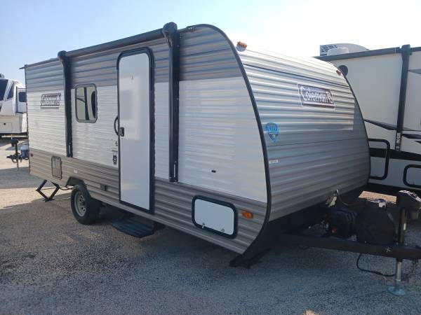 2024 Coleman bunkhouse travel trailer model 17b, excellent condition, like new, all major appliances guaranteed to be working properly, this little travel trailer will sleep six people, front Queen bed, Booth dinette, makes a bed, two rear bunks, rear bathroom with nice size shower, side kitchen with decent countertop space, refrigerator and microwave, this one weighs less than 3,000 lb, big cross through front storage, power awning, on sale $12,900, make ready and walk through included, we welcome trades and offers, call or text Joe for your BEST deal, 830-660-7074, please call for more information on unit, please call for information on other used and new units we have on the lot, thanks