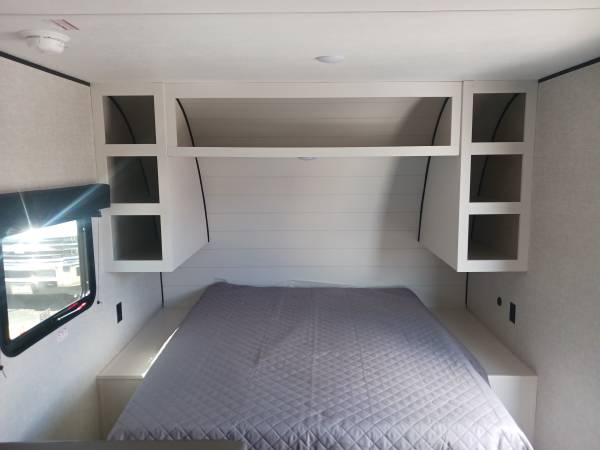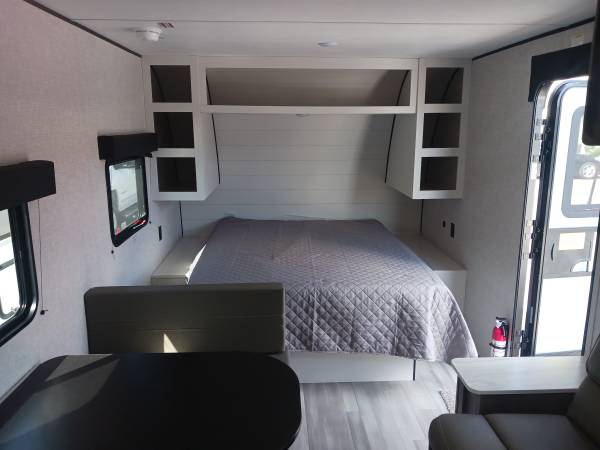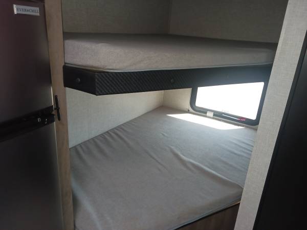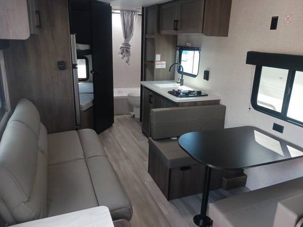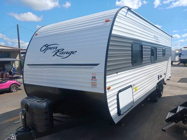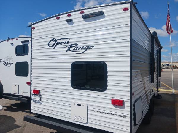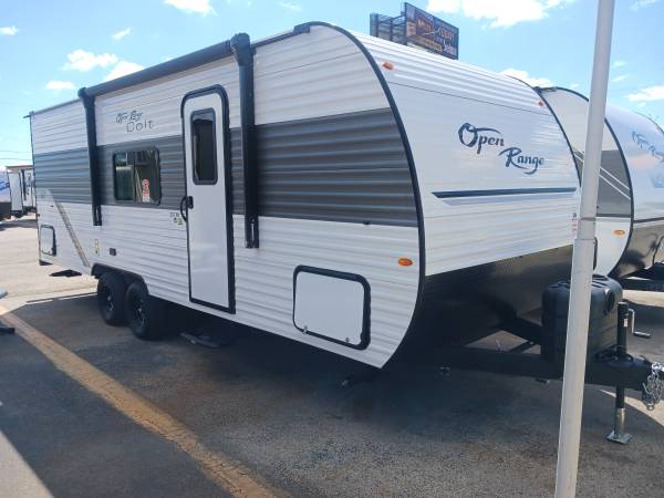 NEW 2025 Open Range Colt Bunkhouse travel trailer model 231bh, 27 ft and 1 in only 4290 lb this is our lowest price full size bunkhouse, it will sleep 8 to 10, roof-mounted air conditioner, 2-door fridge, this one has double beds in the back a booth Dinette a couch and a walk around queen bed up front comes with a power awning and a roof ladder prep, on sale $18,995, we welcome trades and offers, make ready and walk through no charge, call or text Joe for your BES deal, 830-660-7074, thanks, please call for information on other new and used units we have on the lot.