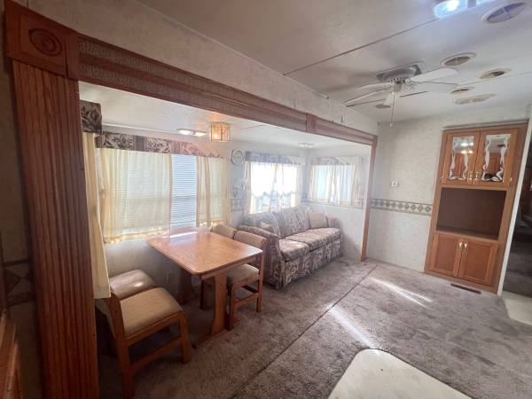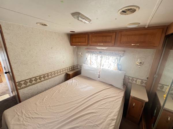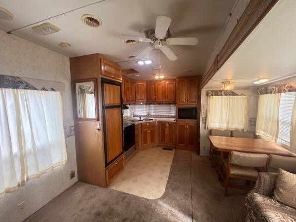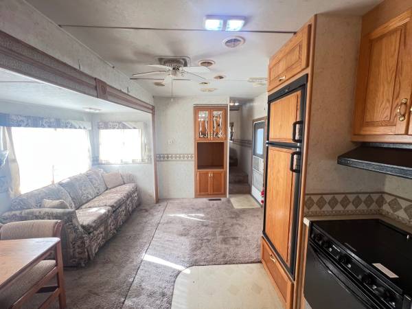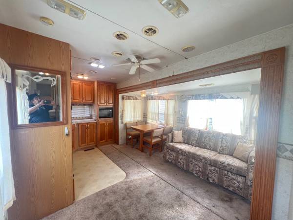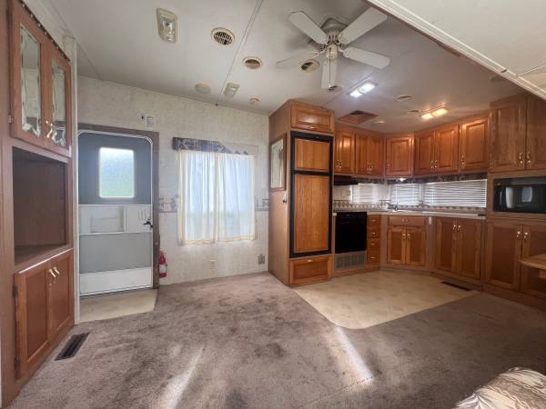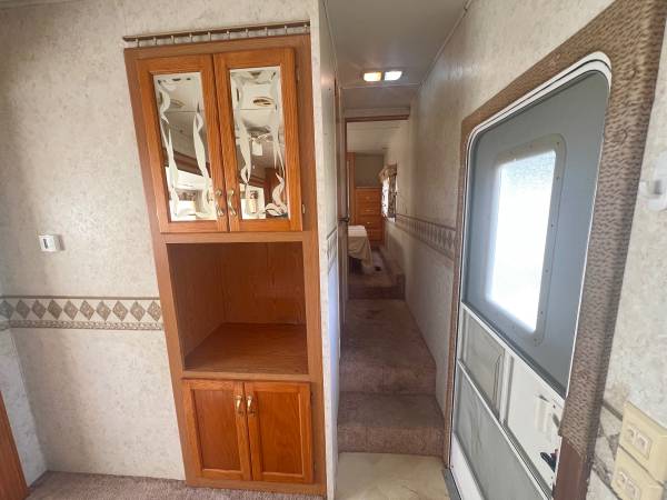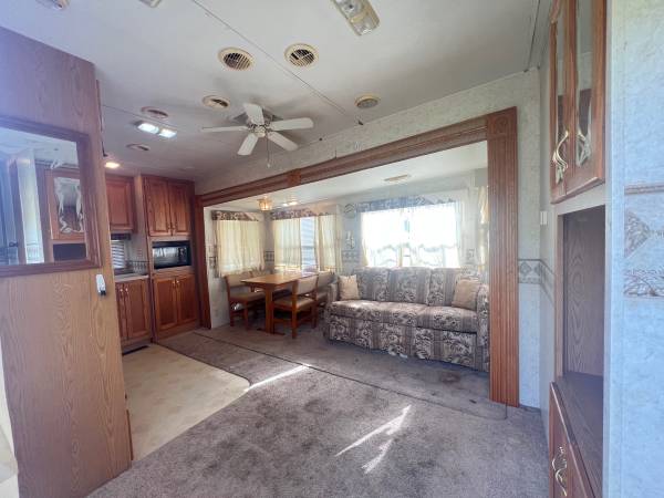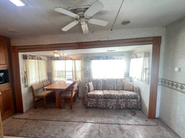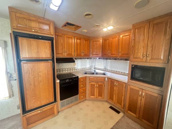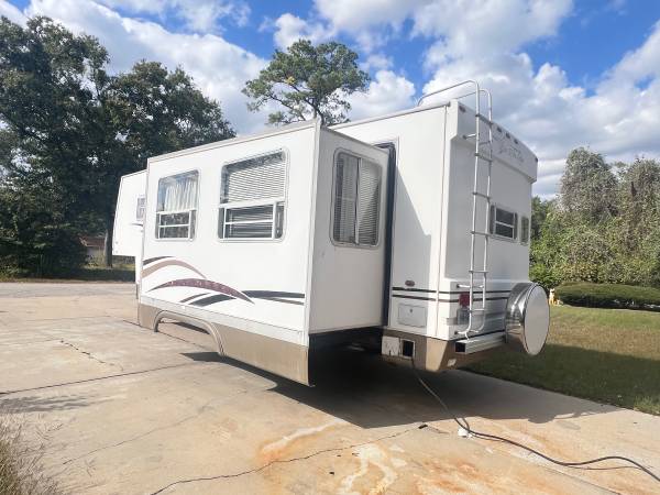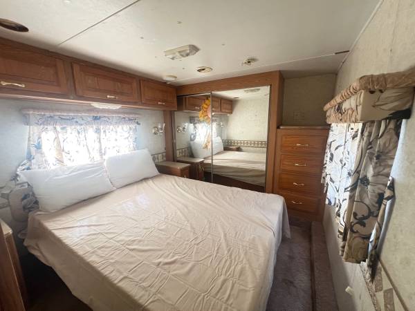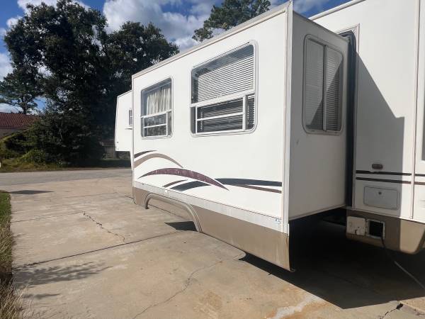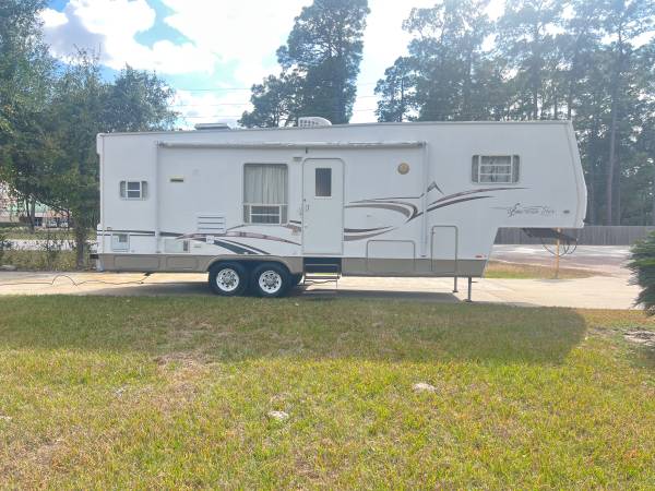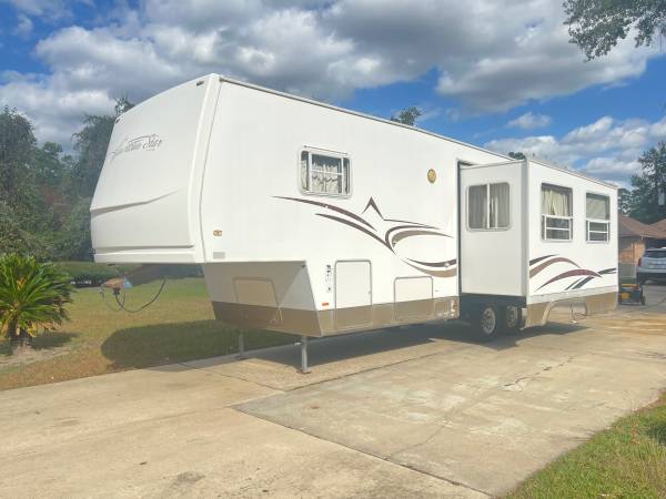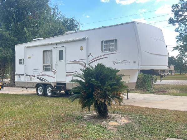 Located in Houston Texas 2004 American star by Newmar fifth wheel 34 foot sleeps6 Large push button electric super slide out front private queen size bedroom island bed walk around private bathroom beautiful large garden stand up shower beautiful vanity sinks extra large living room very spacious large sofa. Makes in bed large dinette boot folds down makes in bed beautiful spacious large kitchen 3 burner stove and oven built-in overhead microwave large refrigerator and freezer Cold Central AC and heat trailer is all fully self-contained trailer is extremely nice and clean inside and out must see to appreciate no water leaks or water damage rockhard fours in rockhard ceilings trailer is ideal for living or Lakeside trailer is very clean clear Texas title in hand call 832.602.7056