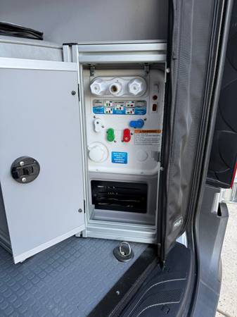 There is a 2 panel solar system on the roof that will power the 2 Li batteries and AC inverter (New inverter installed under warranty in 2023). Cabin batteries are also charged by high power alternator when driving.