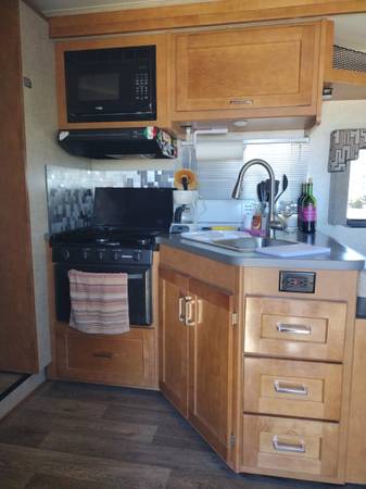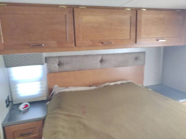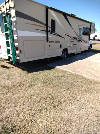 The First $49,500 or Best Offer: Full wall slide-out adds living space throughout the coach. Coffee Glazed Vienna Maple stained woodwork. Ford Econoline E450 S, V 10 gas engine good for 300k miles (8.5mpg recently), 32'9" overall length, sleeps 10 or additional storage, electric awning with lights, black flush tank, privacy curtains, windshield cover and wheel covers, running boards, rear air springs, radio with rear view monitor, Bluetooth, HDTV with remote DVD player. I have installed 2 under dinette seat access doors and one under the bed, a towel rack, light in the bathroom, snaps on curtain, drawer slide, shower glass roller, 2 holding tank heaters, 4 drawers under the table and an electric outlet under booth seat. Just added safety bar across bed above cab, 2 new house batteries. Call 214-236-9269 in Harlingen, Texas. OR BEST REASONABLE OFFER