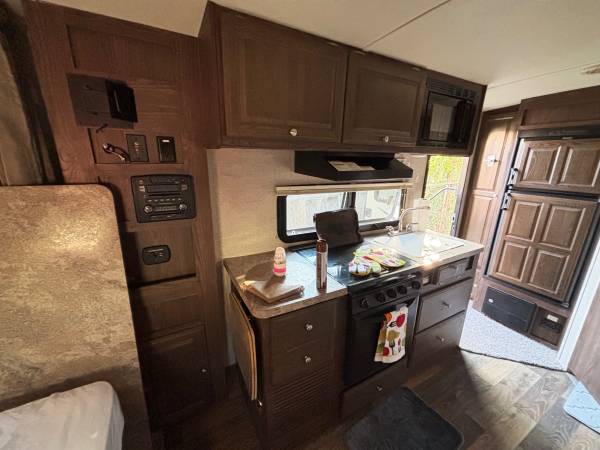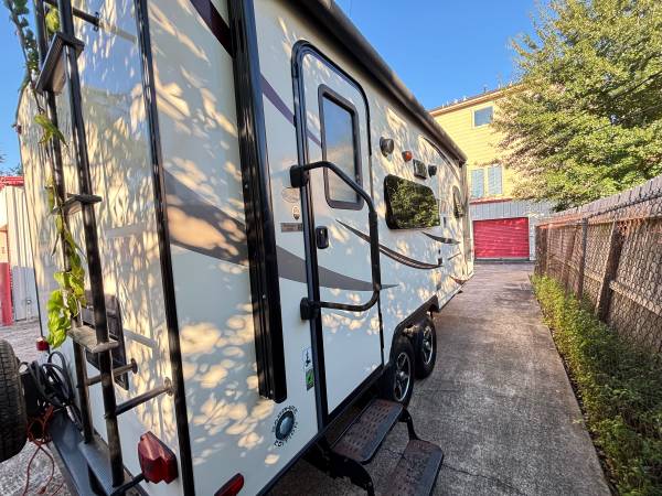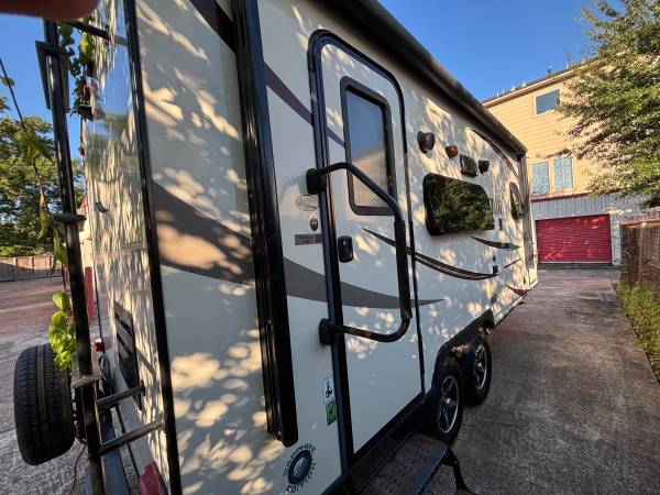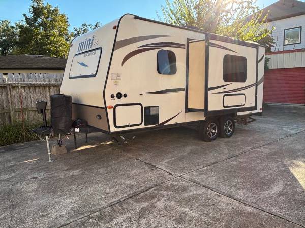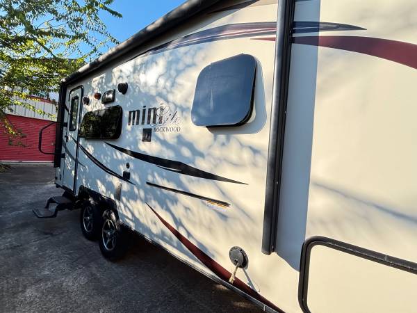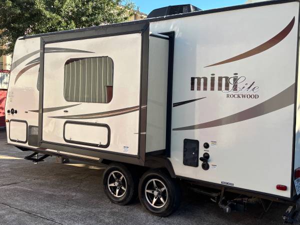 2017 rockwood mini lite 21 foot in length fully self-contained it has been winterized. Everything works great there is no issues whatsoever. Everything works. It comes with lots of storage space indoor and outdoor storage outside shower electric awning, electric jack electric slide, complete kitchen, retractable dining table queen size private bedroom, complete restroom with stand-up shower sleeper sofa, microwavable oven. AC works good heater works great. Tires are in good condition. It was hardly used. It was mostly kept in storage. We bought it with the idea of going a lot of camping and Harley went leather so far has minor tears. Other than that. Everything else is great. I am asking 8900 or best offer. I have a clear Texas title more info. You could contact me at 346-533-7170. Ask for Sheldon. It is also very light and easy to pull.