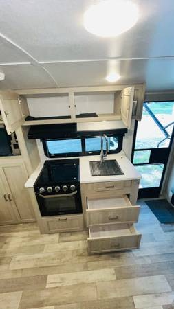 Still in great shape. Barely used for 2300 miles. Comes ready for boon docking with a 30 gallon fresh water tank, solar panels, two propane tanks and gas/electric water heater. Easy to tow. Will come with a Husky tow hitch and stabilizing bars. Message for more details.