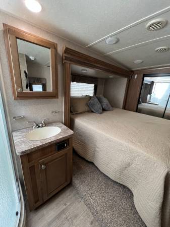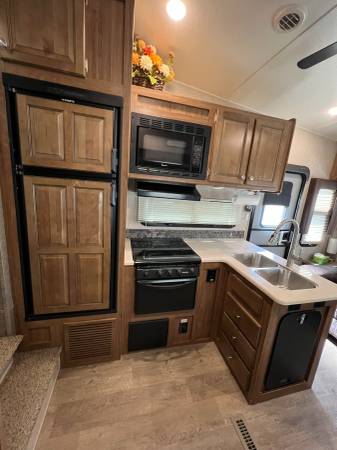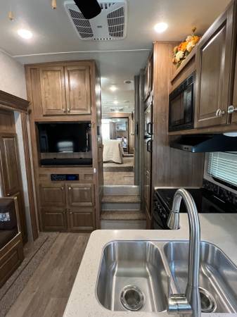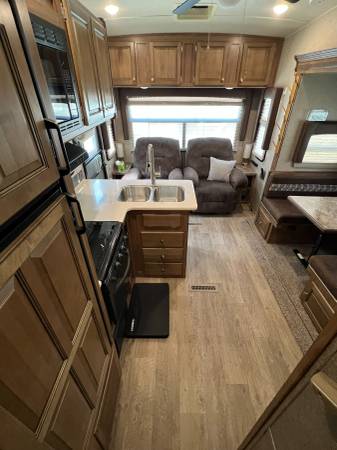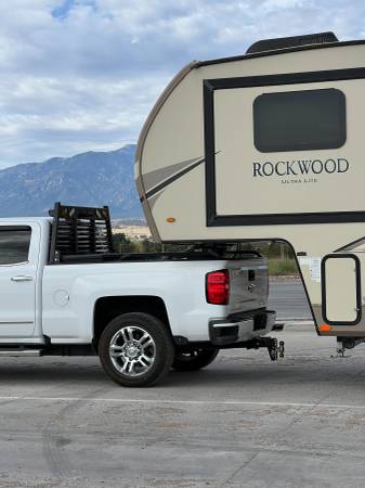 2018 Rockwood Ultra Lite 5th wheel. Gently used. Pulls easily with a 3/4-ton pickup. The RV is fitted with a Reese Revolution kingpin which allows easy pulling with a short bed pickup. This unit comes with a removable 5th wheel hitch. You will have to install the bed attachment, if you don't have one. I purchased mine from e-trailer, and had it installed by Blackjack. It has been a wonderful camper for the two of us and now we want to move on to a diesel pusher.