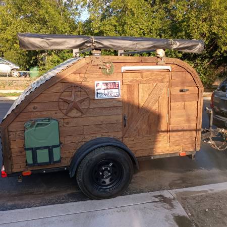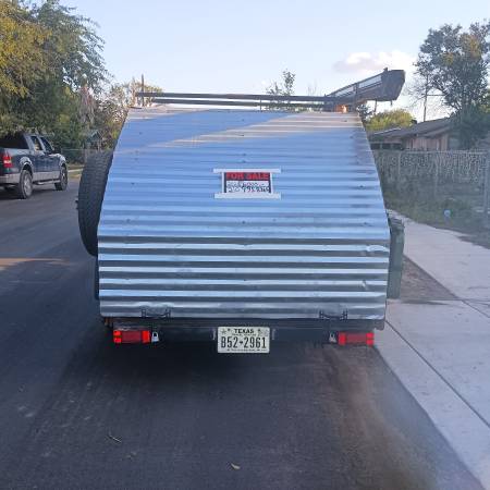2021 HOMEMADE CAMPER. EMPTY WT. 500, CARRYING CAPACITY 500, GROSS WT. 1000- was listed at $6,000, but was lowered to $5,500. CASH ONLY. Was purchased in 2021 by current owner. It has only been used 2x. Includes a/c, t.v., Coleman 8 person tent and portable kitchen. All accessories seen on camper, included. Attached to the camper is a Haul Master trailer tongue box. It is with great sadness and regret, that I have to sell it. Due to health issues, must sell. Have additional pictures of build.
