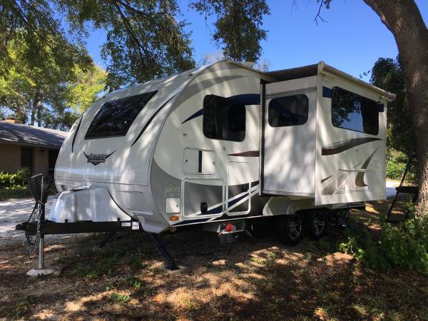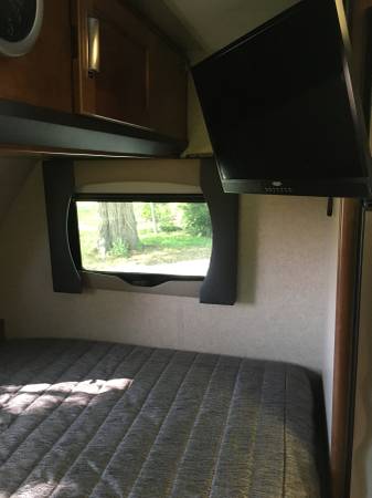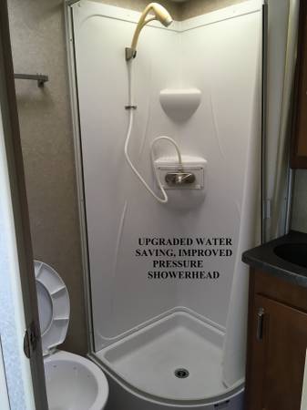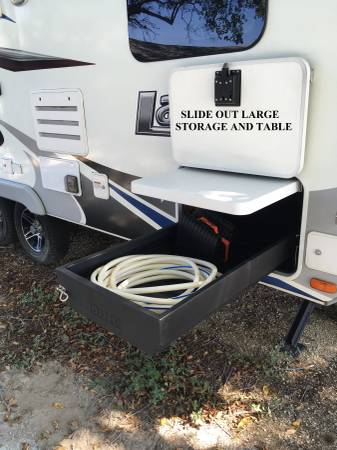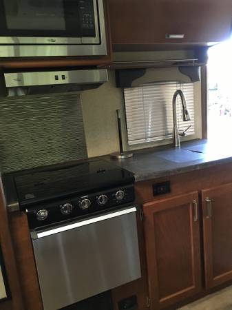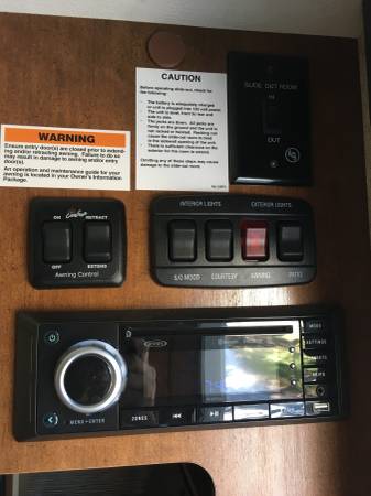 Has all the bells and whistles and built well. One small decal scrape that was done in the sales yard and a small imperfection on the end of the bumper, everything else in like new condition. Non-smoker and oven and range never used. Smells like new, all upholstery and flooring in excellent condition. Lots of brand new extras, Surge protector, black tank washout valve, water hose. Chocks and two sets of blocks are included along with many other accessories.