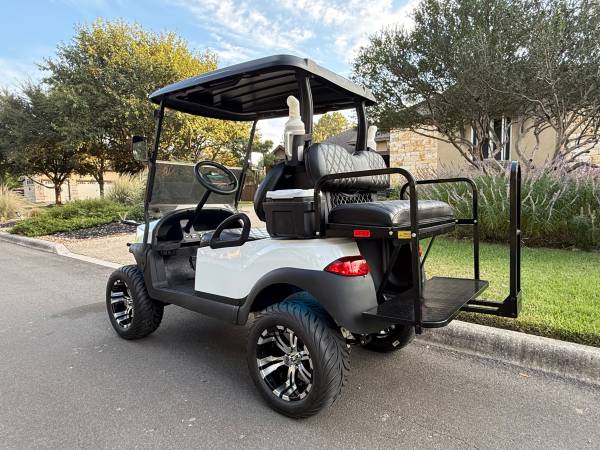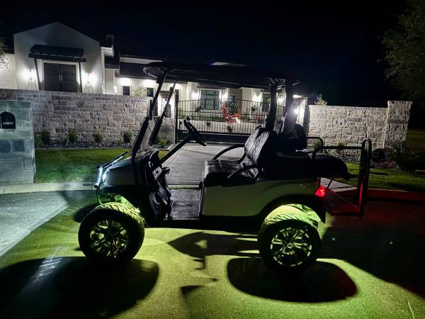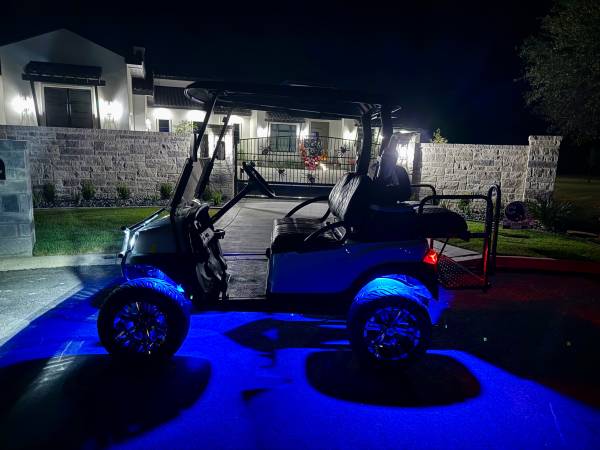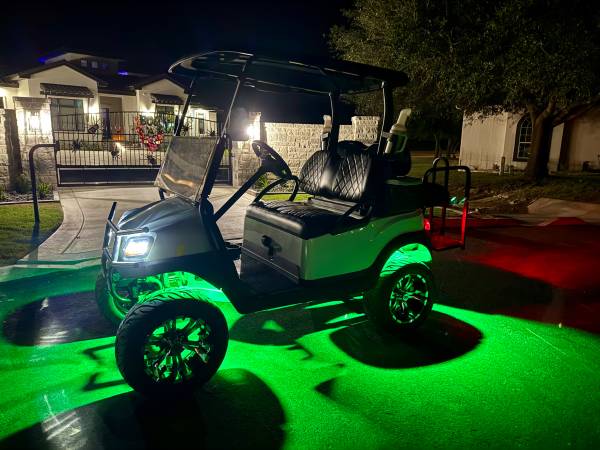 This 2024 CC Tempo has, LED Headlights, Taillights, Battery Gauge, Lift Kit, LED Color Changing Under Glow lights, BT Stereo, Flip down Rear Seat, Custom Wheels and Tires, Custom Seats, Rearview mirrors, Reflectors, Trojan Batteries, Watering Kit, Sand Bottles, Cooler, and More.