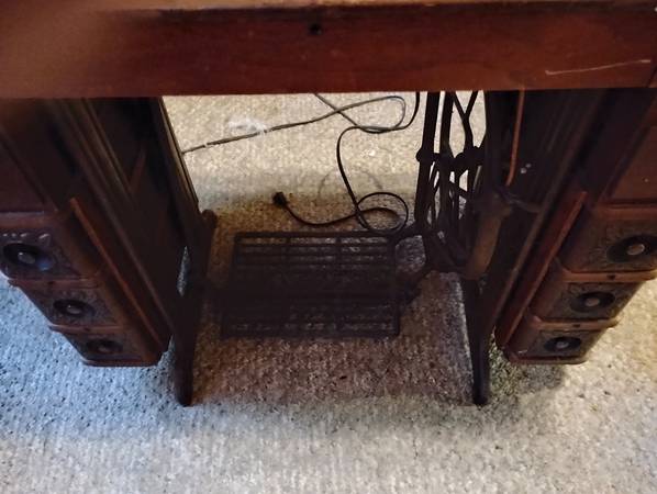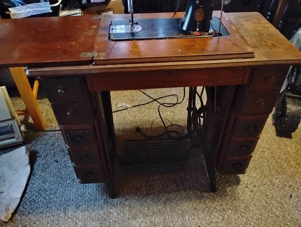 Antique Singer Treadle sewing machine. Has extra belts. In good condition. You pick up. Cash only