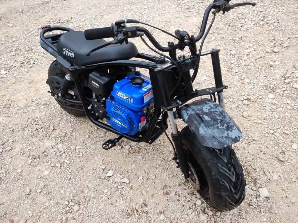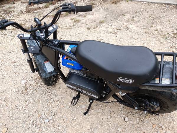B200RSV Mini Bike. Coleman. Full suspension. Brand new DuroMax 208cc engine. Rechargeable headlight/taillight. Quick-detach basket. Barely ridden, like brand new. Cash only.