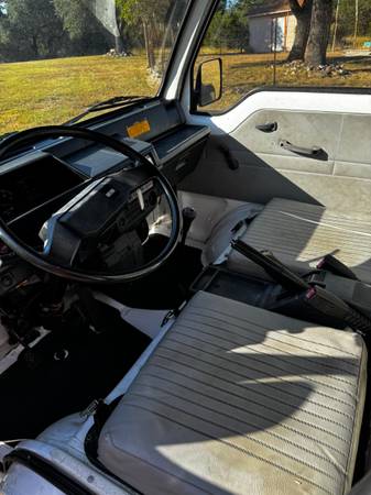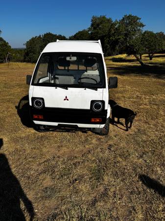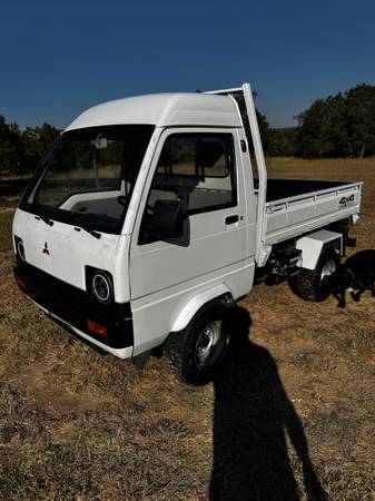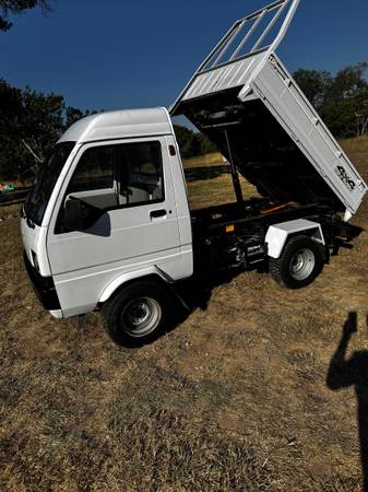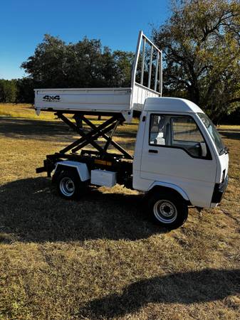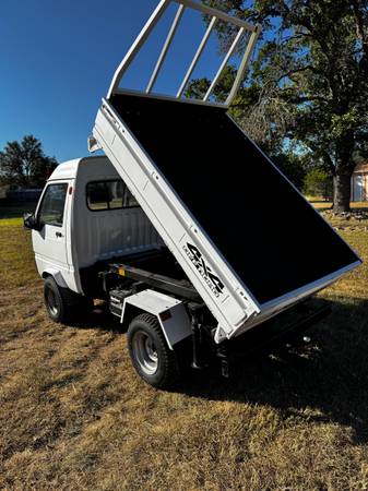 8,200 miles!! Awesome mini truck in outstanding condition. Has steering wheel on left not on right like most minis. Has hydraulic dump bed and can also scissor lift. 4WD Brand new tires 3spd manual tranny, so versatile. Cash only. Call or text Mike. Phone # is with photos.