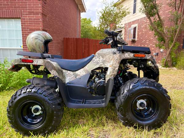 Selling a super clean like new Bass Pro Shop 2022 Tracker 90. Cranks right up with electric and kick start with no issues. Perfect for the young rider. 4 Stroke engine low maintenance, adjustable speed control for the kiddos, front and rear cargo racks, lights, and adjustable spring preload shocks. Comes with new helmet, battery tender, owners manual, tools,and bill of sale for $2700. Located in San Antonio. Cash only no trades.