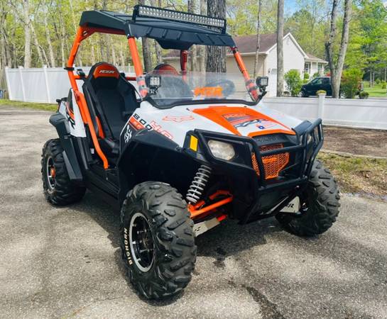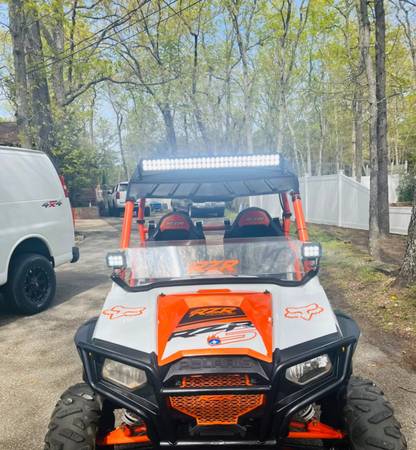 3,286 miles, bright LED lighting, Bluetooth stereo with orange LED halo speakers, extended arms, new 4-point harness, Fox shocks, and factory graphics. Perfect running condition, all original. Recently replaced battery.