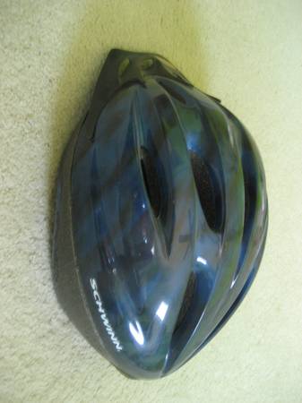 Sale includes a Schwinn Bicycle Helmet with limited use, model #SW135. This helmet has never been dropped or damaged and comes with a fully adjustable headband, as well as a strap system to accommodate a custom fit. In great used condition.
