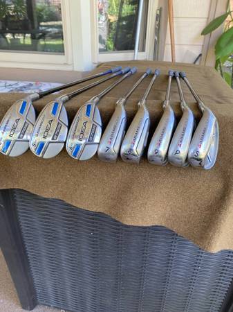 Adam’s golf clubs Idea A705, 4 Hybrid, 5 Hybrid, 6 Hybrid, 7 -SW, Grafalloy, High Launch-Lite Flex Like new