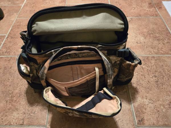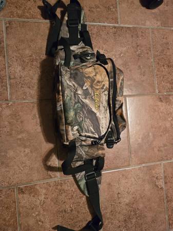 Cabela's waist pack bag for hunting. Has padded belt for waist with large front pouch and several small pouchs. Like new. $25 call/text