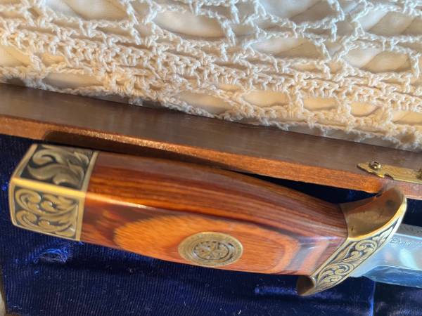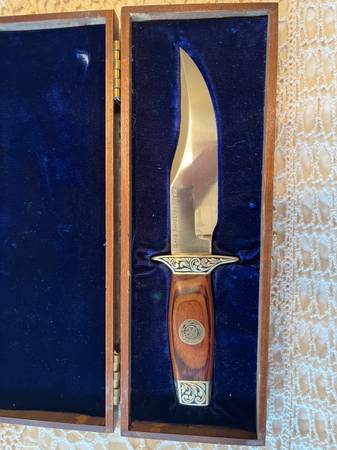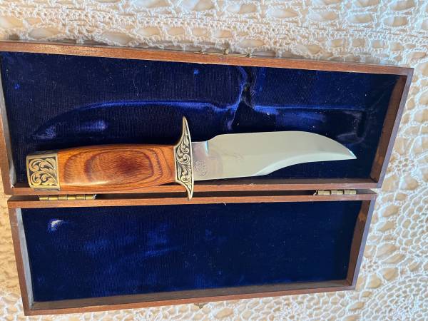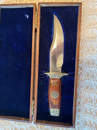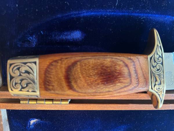 FATHERS DAY 15TH! S&W MASTER ENGRAVED "TEXAS RANGER" BOWIE KNIFE. TEXAS RANGER COMMEMORATIVE COMMISION. MASTER ENGRAVER JERE DAVIDSONS' WORK OF ART. THIS KNIFE IS NEW OLD STOCK WITH A WALNUT CASE THAT IS FRENCH FITTED TO THE KNIFE. THE CASE HAS THE TEXAS RANGER COMMEMORATIVE COMMISION MEDALLION EMBOSSED INTO THE WOOD. THE KNIFE HAS THE SAME IN A MEDALLION IN THE FABULOUS WOOD HANDLE AND TEXAS RANGERS ENGRAVE IN THE BLADE. THIS KNIFE IS NUMBER TR16956. FORGED 440 STAINLESS STEEL. MUST BE 18 YEARS OLD OR OLDER TO PURCHASE A KNIFE IN TEXAS. Seller in no way accepts responsibility for nor assumes any liability in the use of this item.