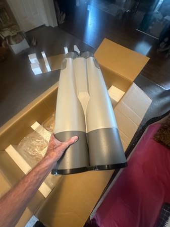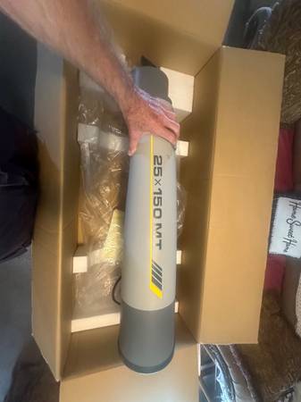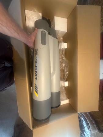 Bough and never used. Still in shipping box. They are huge and weigh 43 pounds. No mount or tripod included.