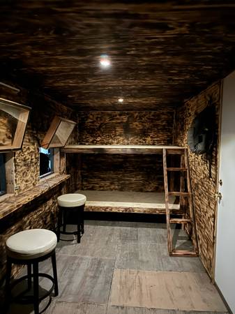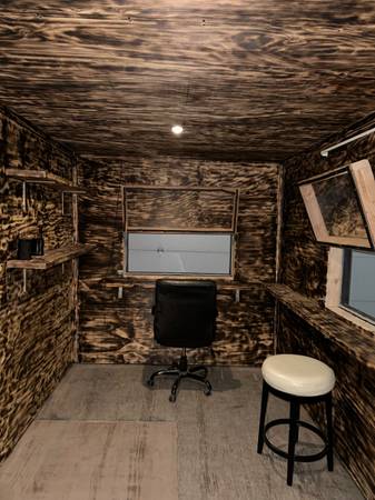 20’ Insulated shipping container hunting blind for sale. Has 4 fold up windows, bunk beds and storage. $12,500 for this one or message me if you are interested in getting a different one built.