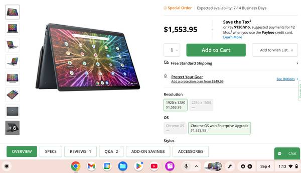 HP 13.5" Elite DragonFly Chromebook Enterprise Multi-Touch 2-in-1 - $700